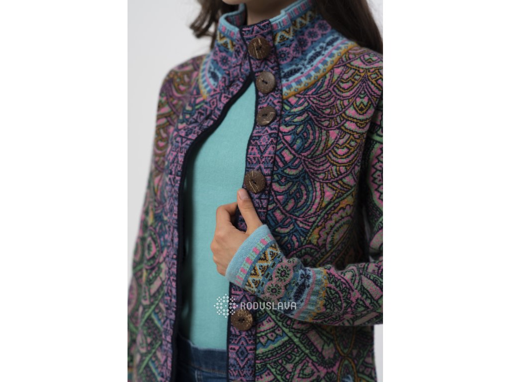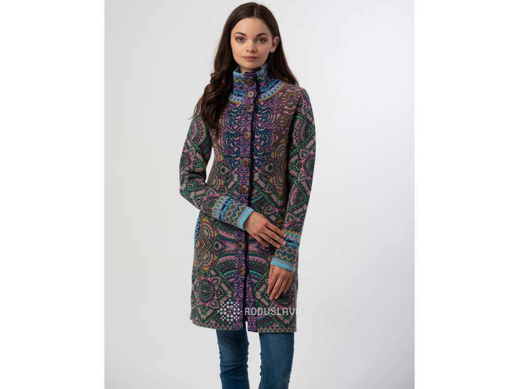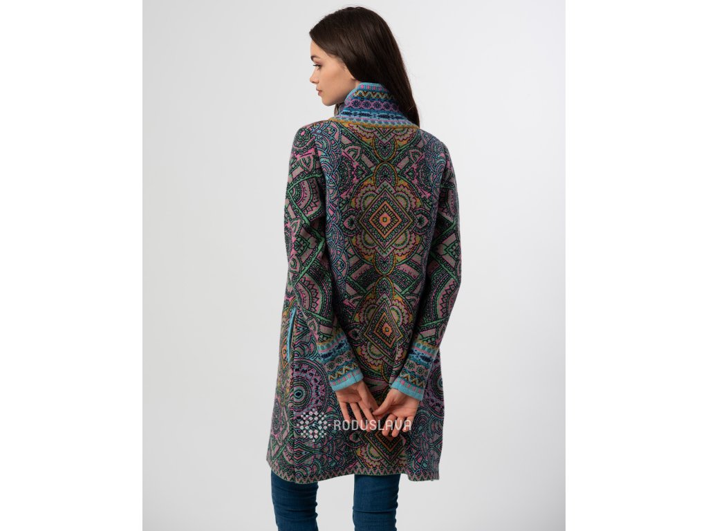 Pletený kabátek s pestrými vzory značky Kooi.